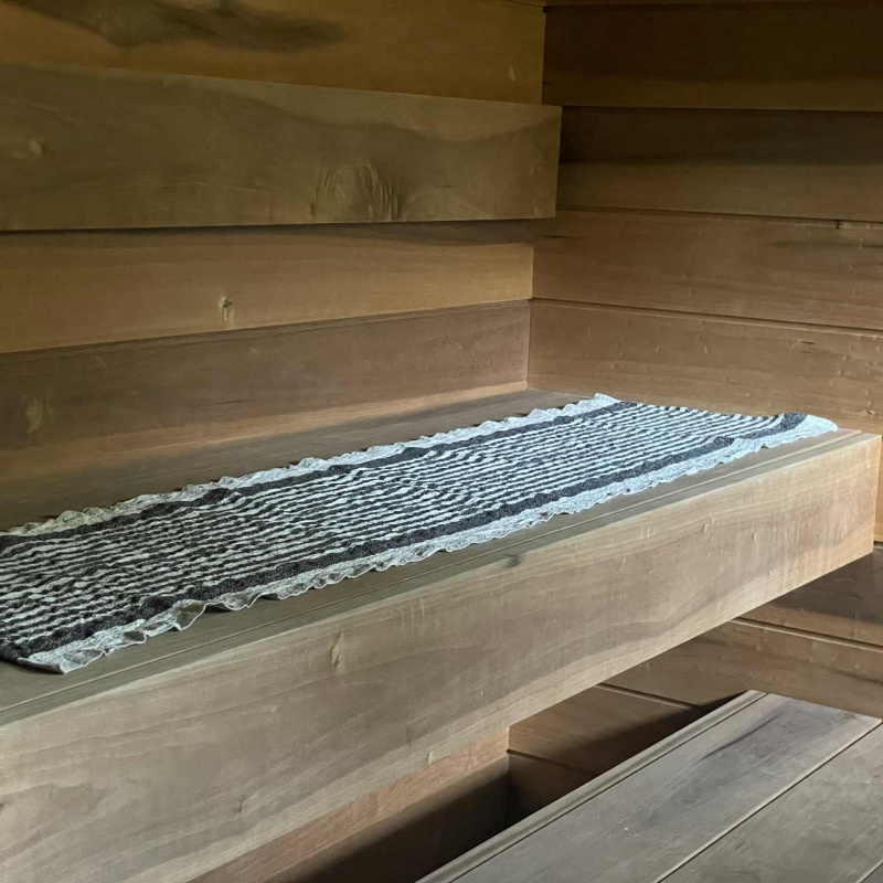 Linasest kangast saunalava istumisalus. Kaitseb saunalava laudu ja saunataja nahka.