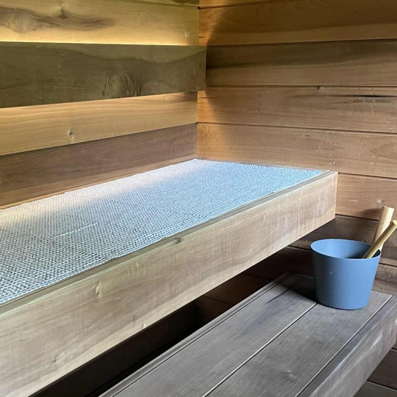 Sauna istumisalus on valmistatud naturaalsest kangast. Istumisalus on paraja paksusega, et kuum lavalaud ei kõrvetaks, kattes saunalava kogu pikkuses.